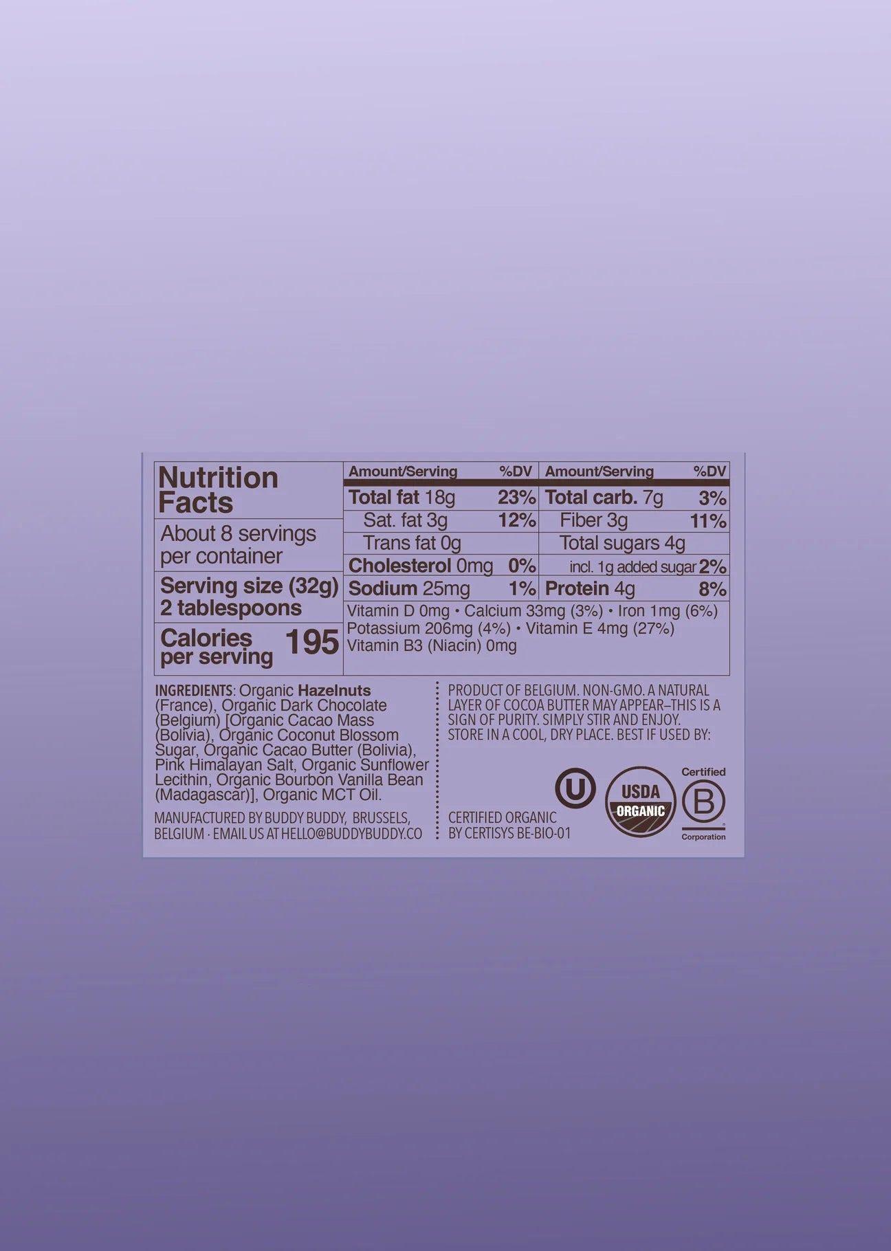 Buddy Buddy - Organic Parline Chocolate Nut Butter